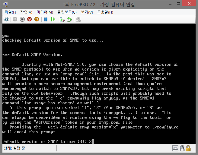 첫 번째 화면에서 엔터를 치면 위와 같이 나오는데 SNMP 기본 버전 선택을 할 수 있습니다.
